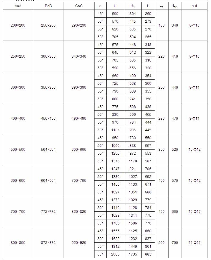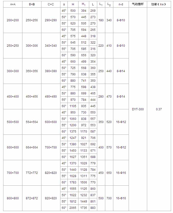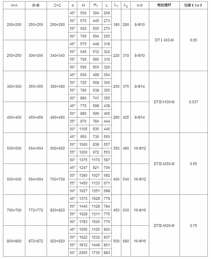 500×500 564×564 600×600 45° 470 310 350 480 16-Ф12 DTⅡA250-M 0.55