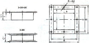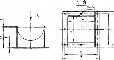 注:1、螺旋機輸送長度及尺寸L均見表二、表三。 2、圖n×500為蓋板卡子尺寸,n值視螺旋機長度而定。 3、圖中尺寸p為進出料口中心線。