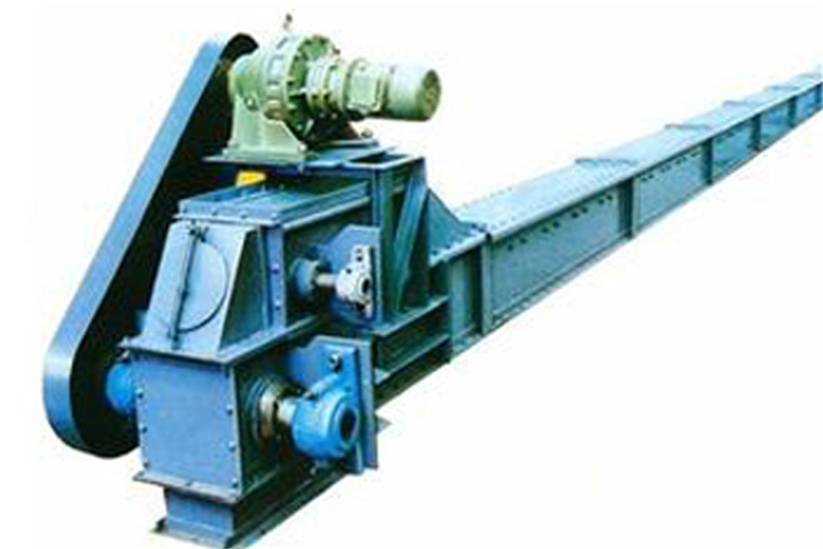 埋刮板輸送機是一種在封閉的矩形斷面的殼體內(nèi)借助與運動著的牽引鏈條連續(xù)輸送散狀物料的運輸設(shè)備。傳動采用減速電機通過鏈傳動與頭部傳動軸相連的形式。